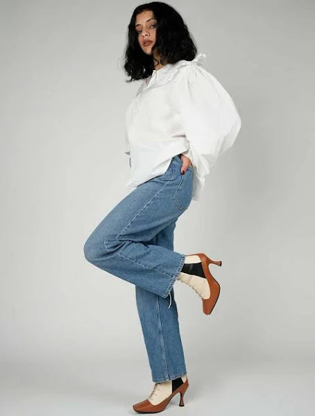 The Theater Women Bowie Life on Mars Colourblock Lace-Up Boots are a bold fashion statement that combines retro aesthetics with modern design. Featuring a unique colourblock pattern, these boots offer a distinctive look that stands out. The lace-up closure ensures a secure fit, while the pointed toe and kitten heel add a touch of elegance.